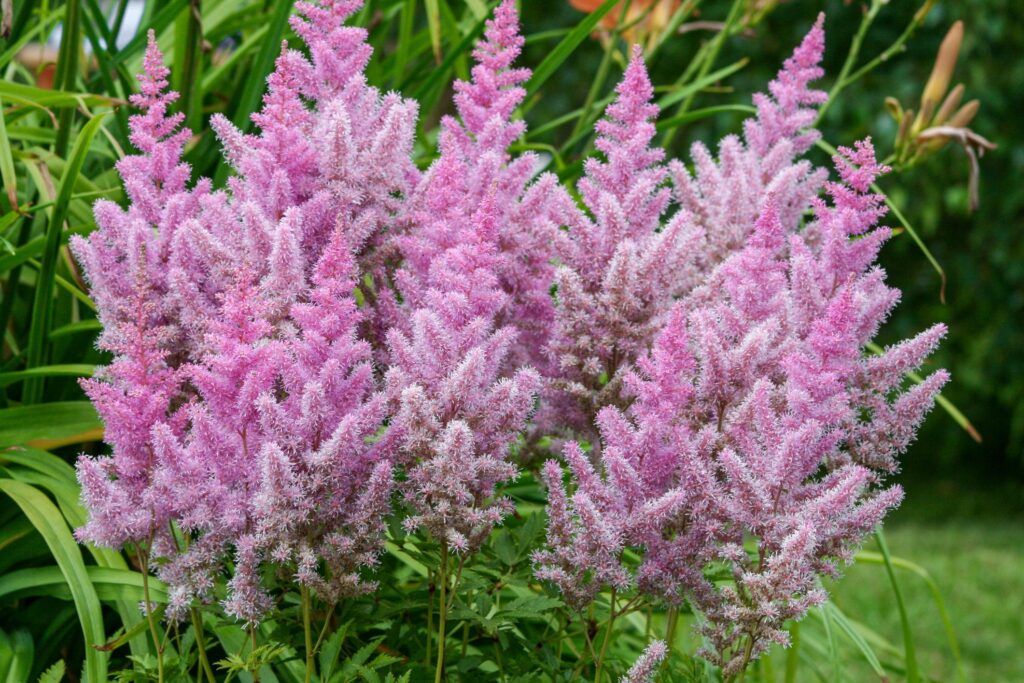 Astilbe performs well in shaded or semi-shaded locations where direct sunlight is limited.